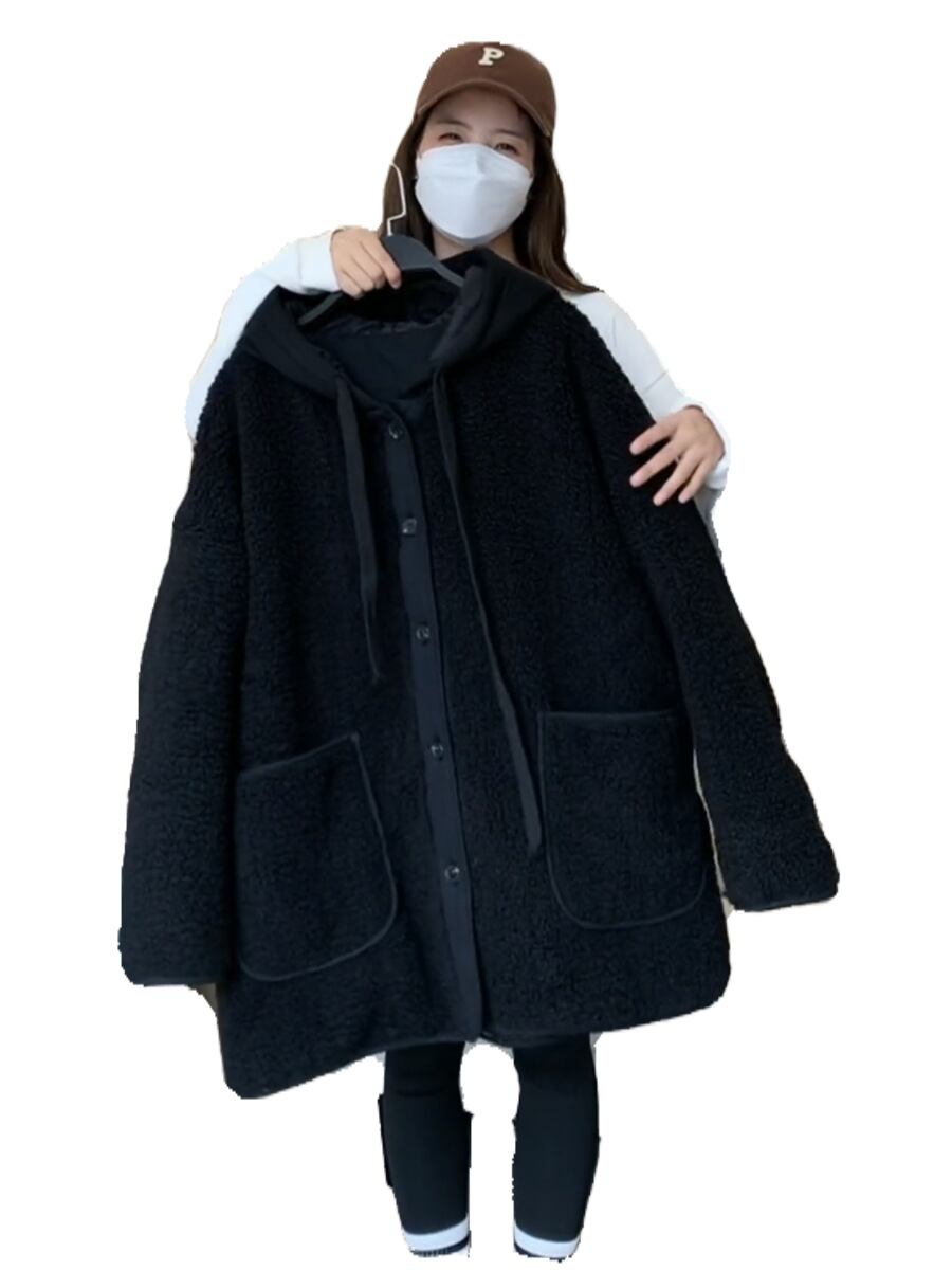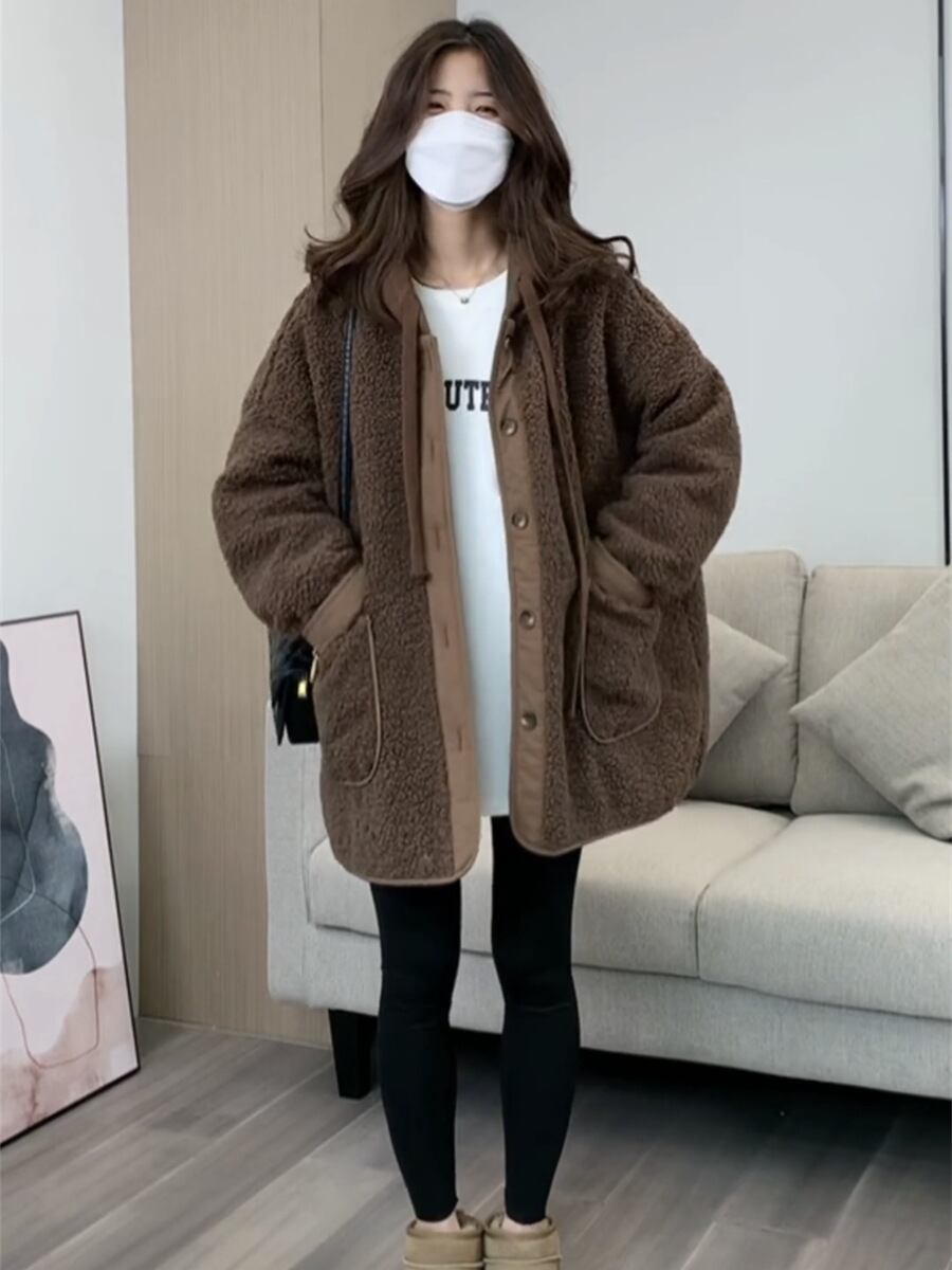 夹棉加厚羊羔毛外套女年冬季新款韩版宽松中长款棉服连帽上衣