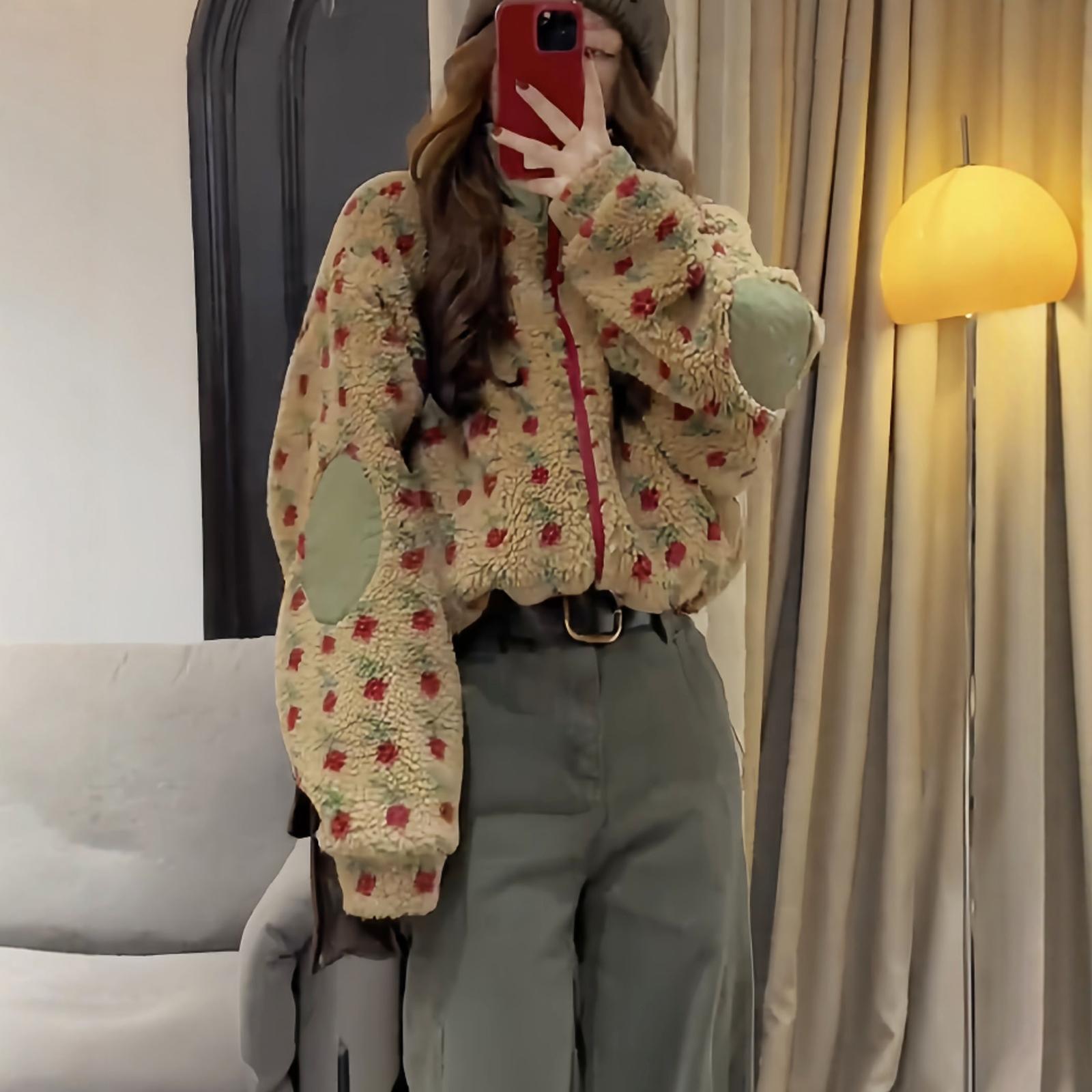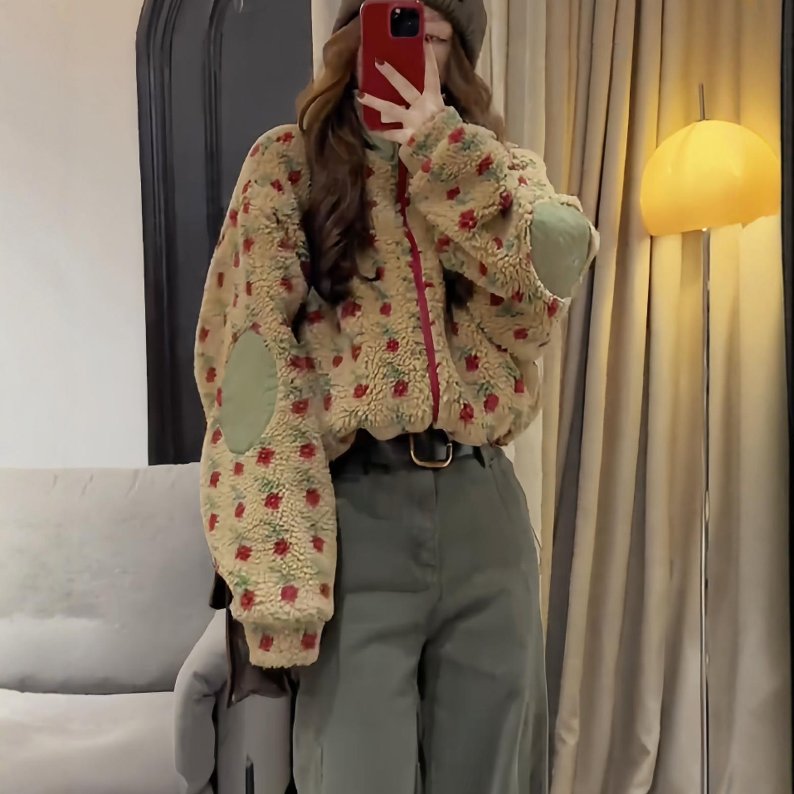 十三行设计感高领羊羔毛短款外套女秋冬季新款慵懒风减龄拉链上衣
