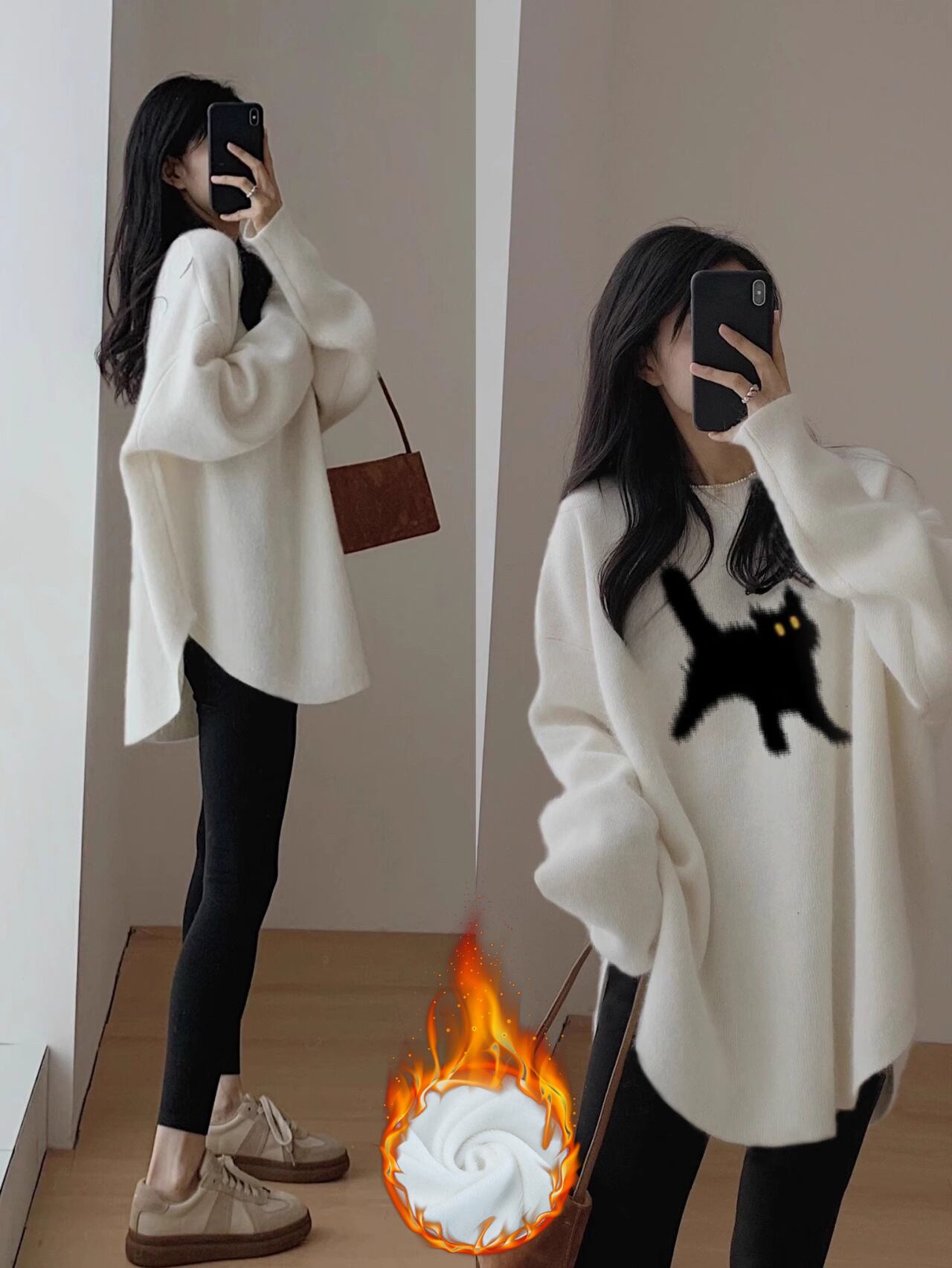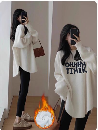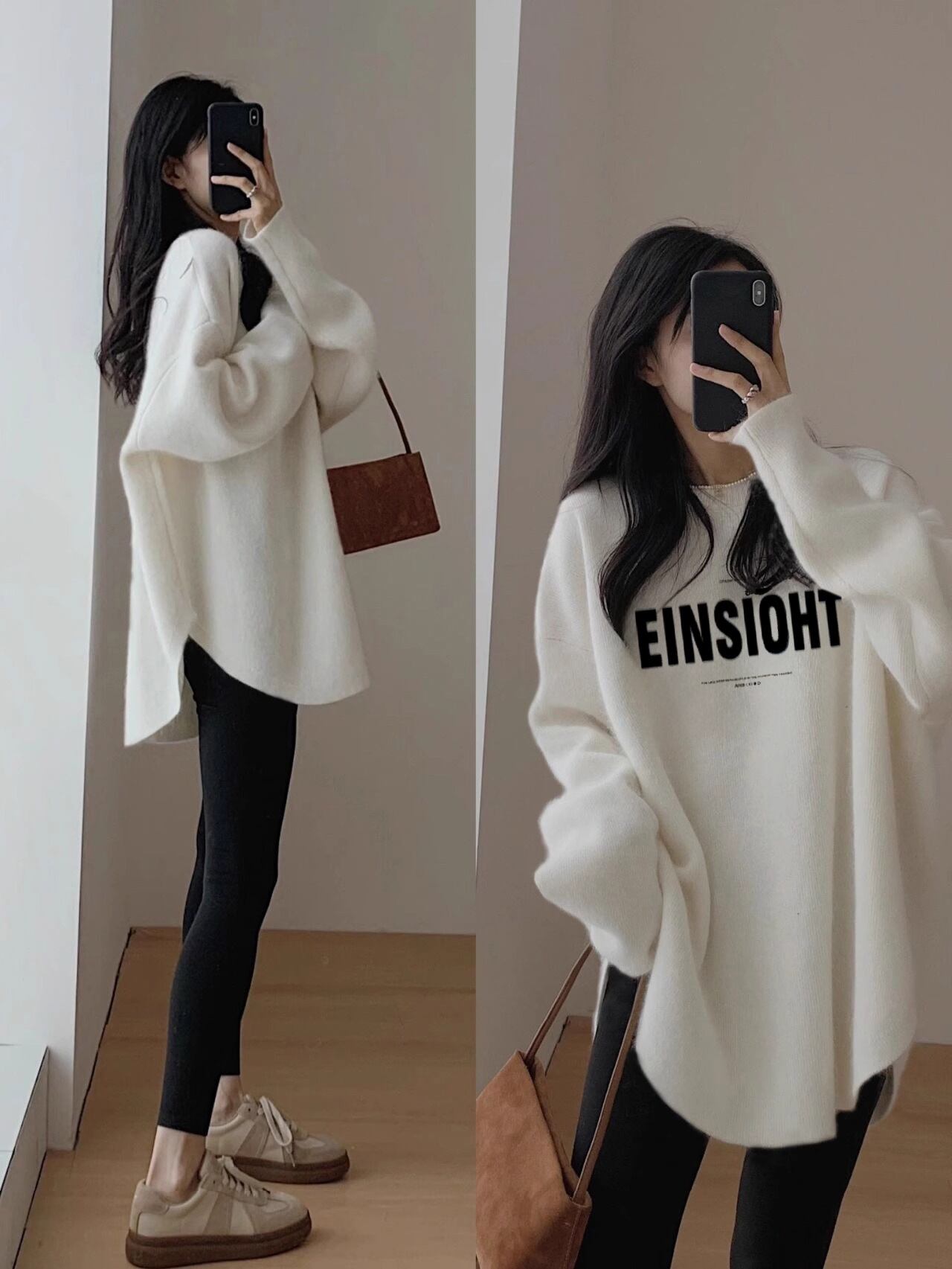 配鲨鱼裤上衣春秋冬季新款遮屁股中长款白色长袖内搭卫衣打底衫女