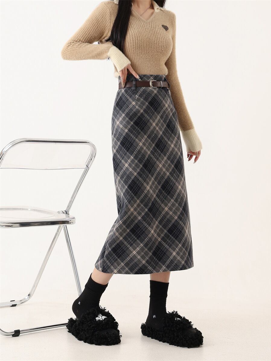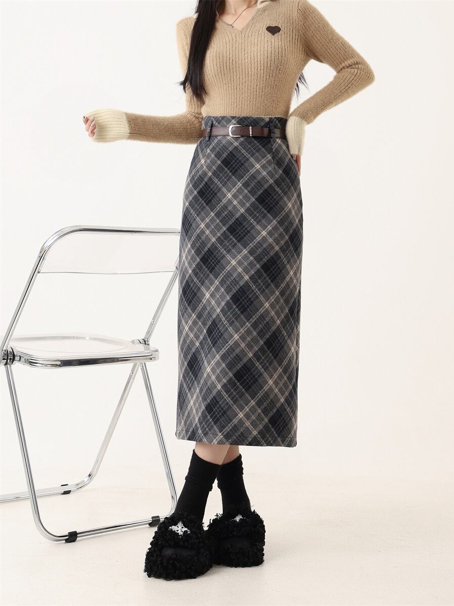 ロングスカート レディース 厚手 ウール チェック ビッグサイズ 瘦せ着る OL 大人可愛い 秋冬