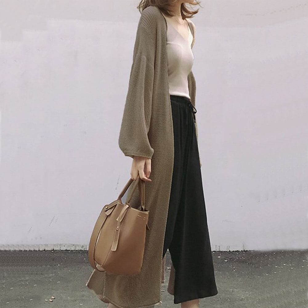 このカーディガンは、ゆとりあるシルエットとトレンドのランタンスリーブが特徴的なニットアウター。ポリエステルと綿の心地よいブレンド素材で、春や秋のゆらぎやすい気候にぴったりの一枚です。