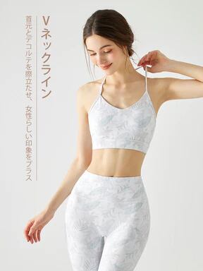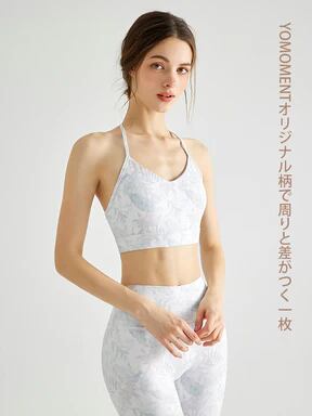 プリント柄 背中見せ ホルターネック スポーツブラ