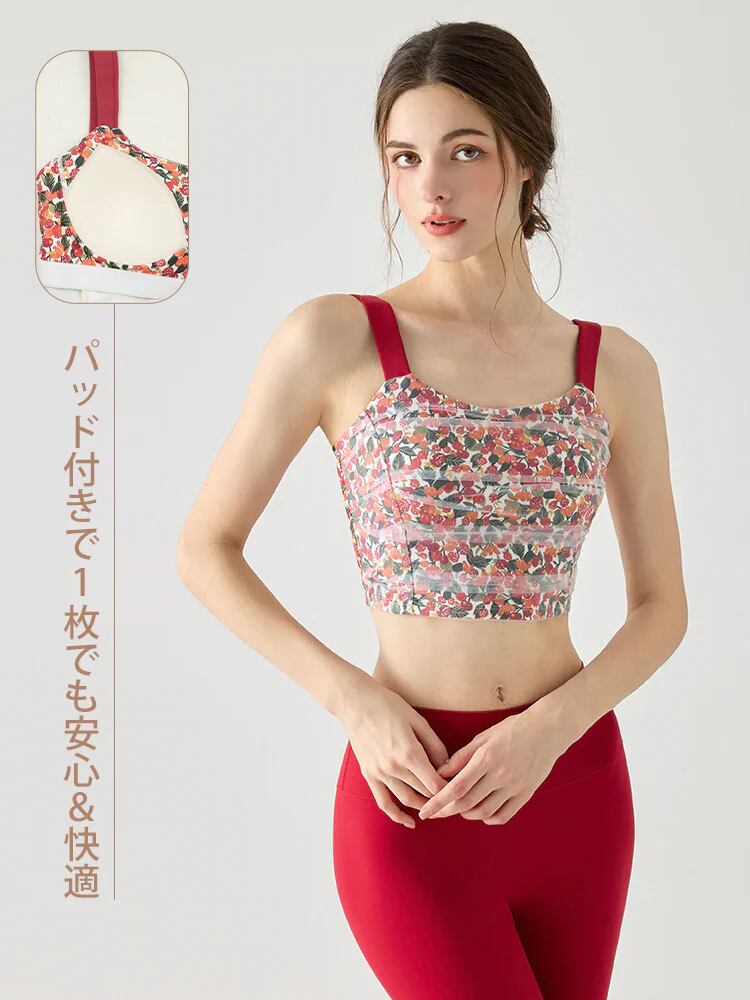 表面にメッシュ素材を重ね、通気性とデザイン性を両立させたスポーツブラ。