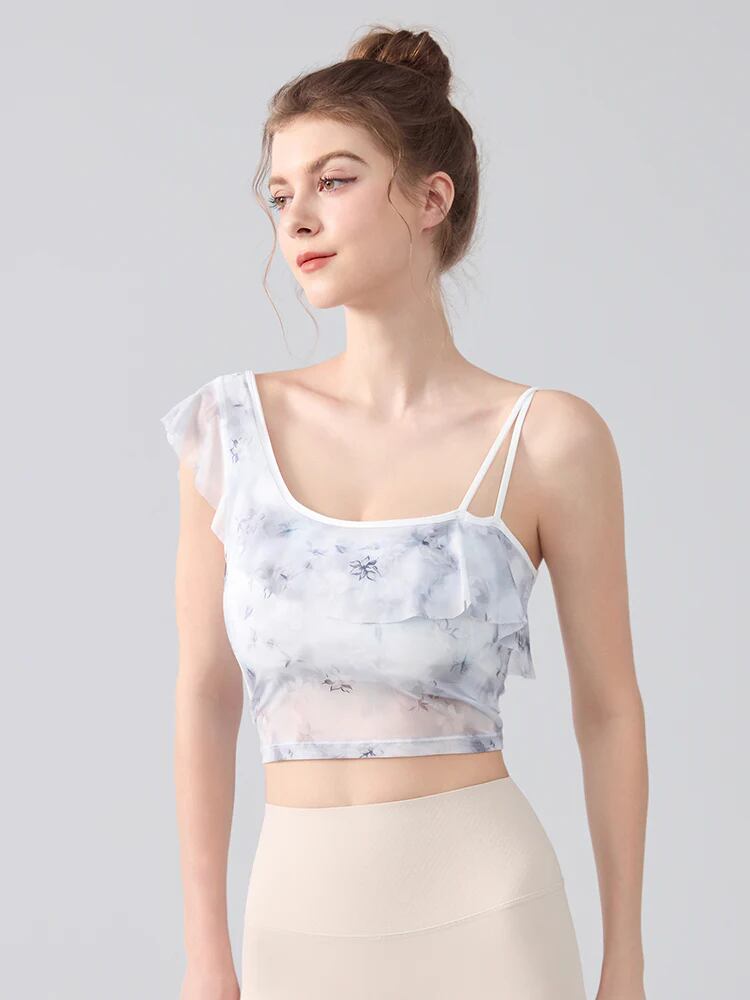 吸湿速乾 アシンメトリー メッシュ フリルキャミブラ