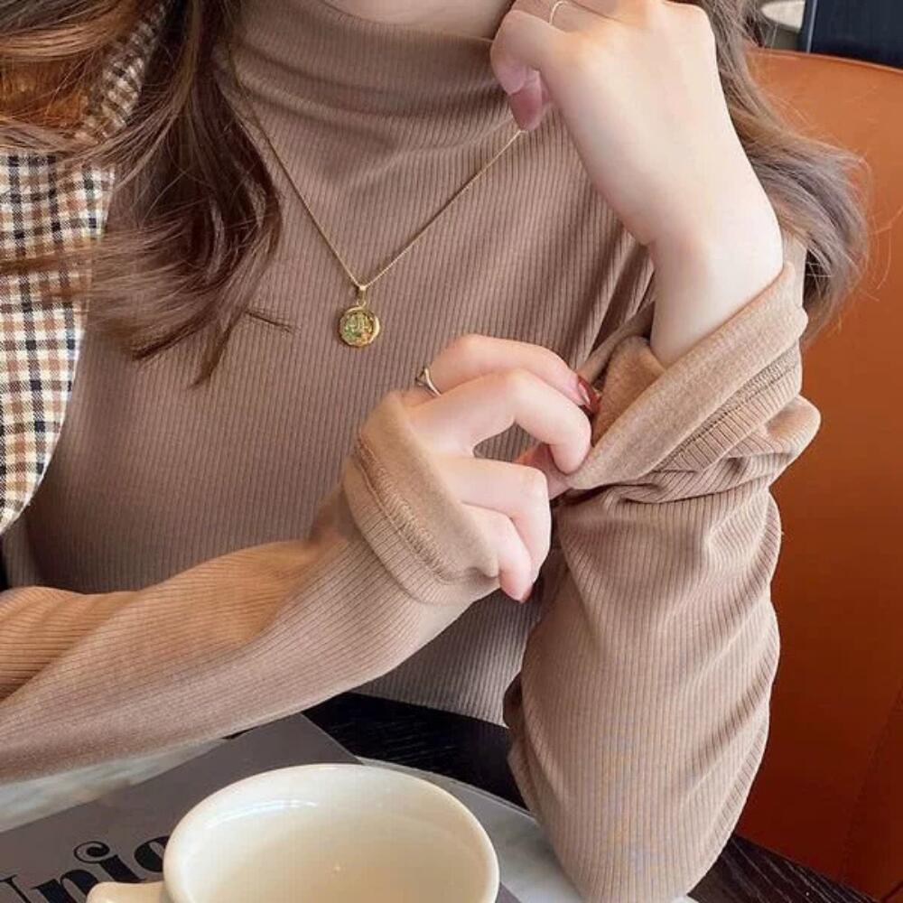 長袖のハイネックスタイルは、首回りを温め、さりげない上品さを演出します。オフィスでもカジュアルでも活躍できるこのセーターは、多彩なコーディネートに合わせやすく、冬の定番アイテムとして大変おすすめです。