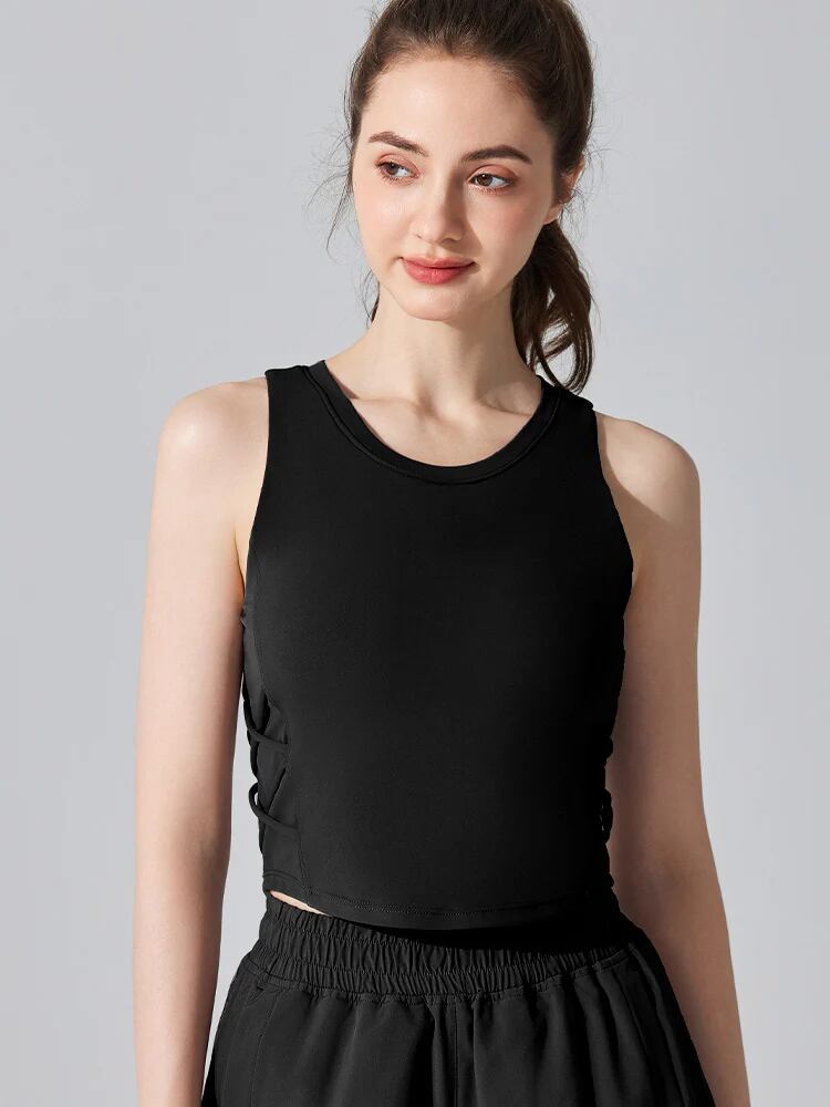カップ付きで、ボディラインにぴったりフィットし、動いても安心。