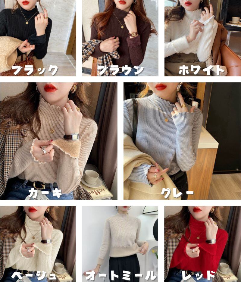 ニット セーター ハイネック レディース 裏起毛 トップス リブ 長袖 裏起毛ニット リブニット タートルネック 無地 暖かい 厚手 オフィスカジュアル きれいめ 大人 可愛い 秋冬 リブなし フリルネック メロウ フリル 細身 フィット 伸縮性 通勤 OL オフィス 通学 学生