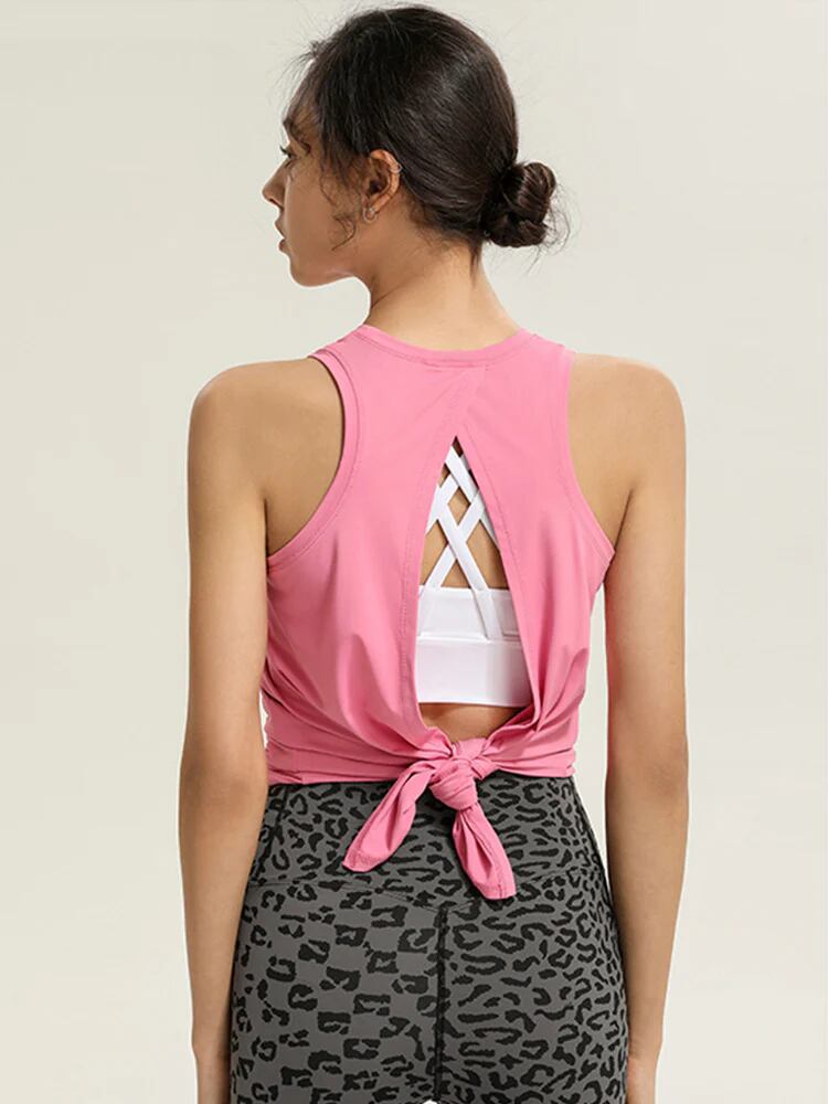 タイバックまたはオープンバック、後ろの裾は結んで結んで腰をフィットさせたり、自然にたるませたりすることができます。ノースリーブのホルターは素晴らしい眺めと涼しさを与えてくれます。