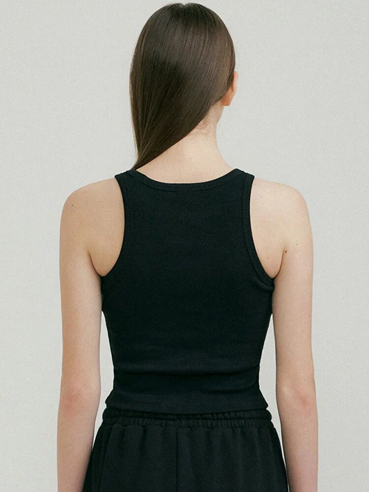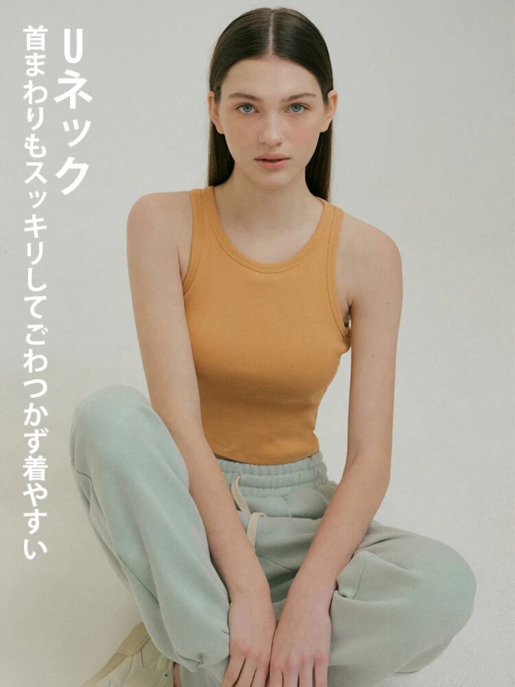 リブ Uネック タンクトップ パッド付き 裾交差