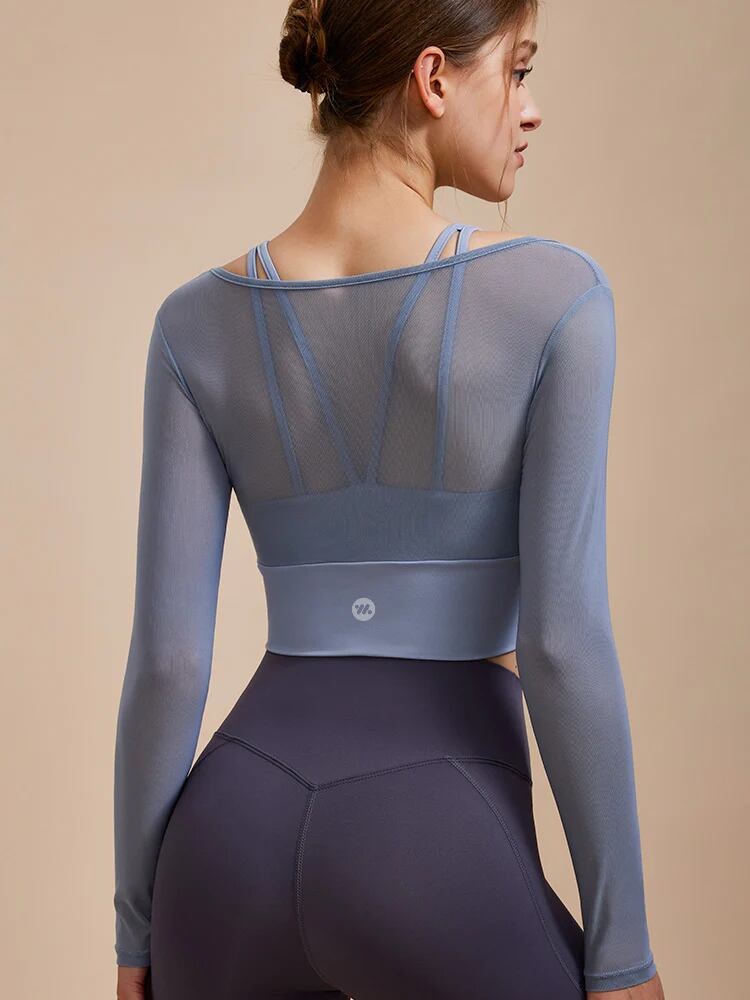 フェイクレイヤード メッシュ切り替え 長袖 ブラカップ付きフェイクレイヤード メッシュ切り替え 長袖 ブラカップ付き