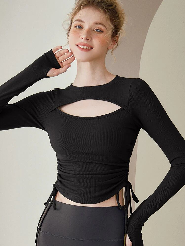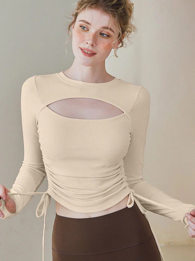 両サイドにドローストリングを施し、丈感を変えることはもちろん、シャーリングを寄せてフェミニンな雰囲気に変えることができます。
