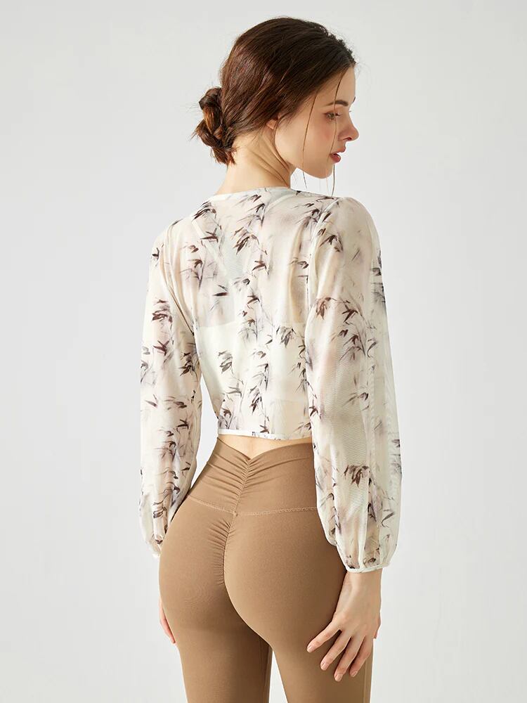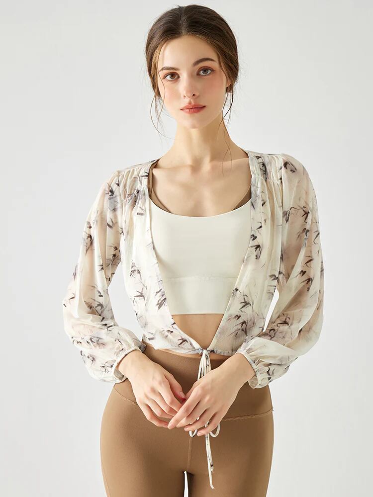 エレガントな印象を与える、タイダイ柄のロングスリーブトップス。