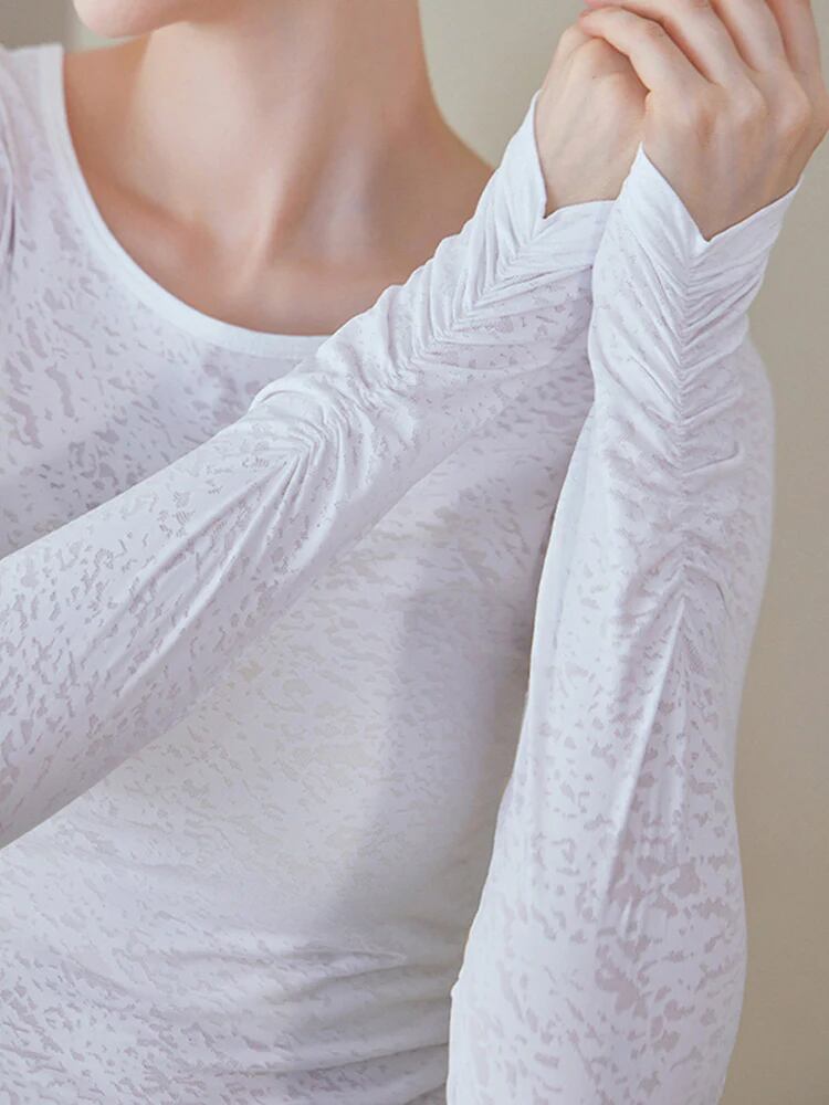 手の甲までしっかりカバーする指穴は日焼け止め対策はもちろん、アクティブなシーンにも袖のズレ上がりを防いでくれます。