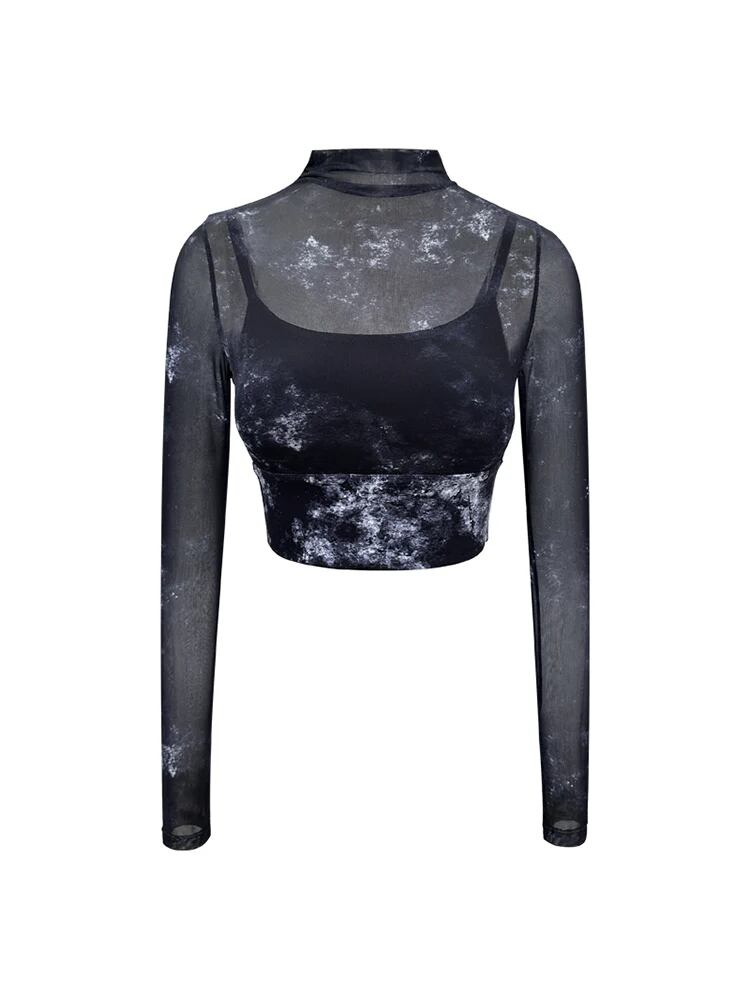 タイダイ柄 オーガンジー ハイネック長袖