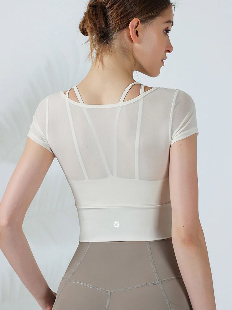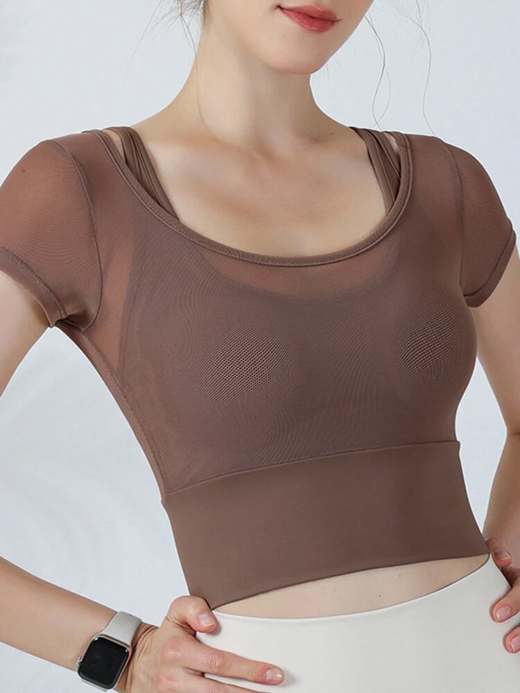 フェイクレイヤード メッシュ切り替え 半袖 ブラカップ付き