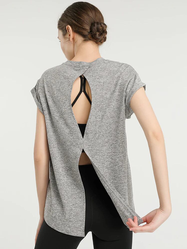 背中のさりげなく肌見せできる開きがおしゃれでかっこいいのも特徴です。レイヤードスタイルを楽しむこともできる。