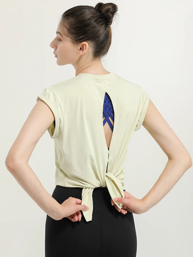 背面のスリットの入った裾を垂らしても可愛いし、腰あたりでおしゃれに結んだ見た目も楽しめる2way仕様のトップスです。