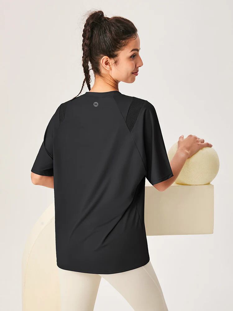 ゆったり ロング丈 半袖Tシャツ メッシュ切り替え