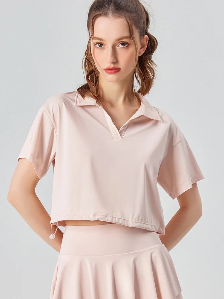 胸元がスッキリ開いたVネックはデコルテをキレイに見せ女性らしさを引き立ててくれます。