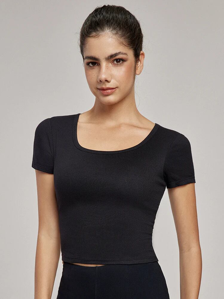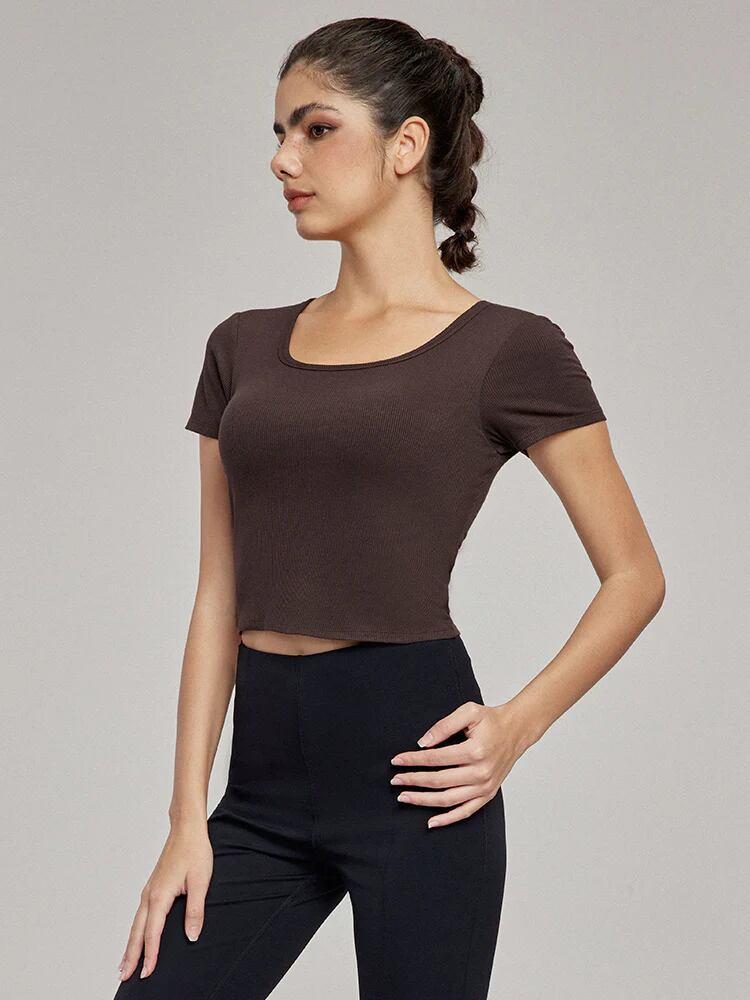 カップ付き クロップド丈 スポーツ半袖