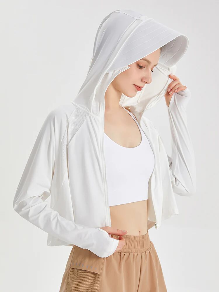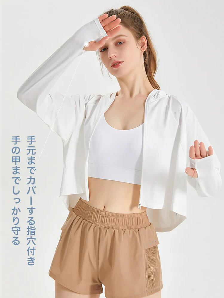 UPF50+ 接触冷感 吸湿速乾 サンバイザー付き 顔までカバー パーカー