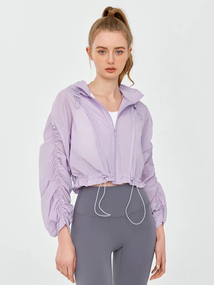 細部までこだわって作られて、袖のギャザーで抜け感をプラス、スポーティーさだけではなくフェミニンな印象も併せ持ちます。