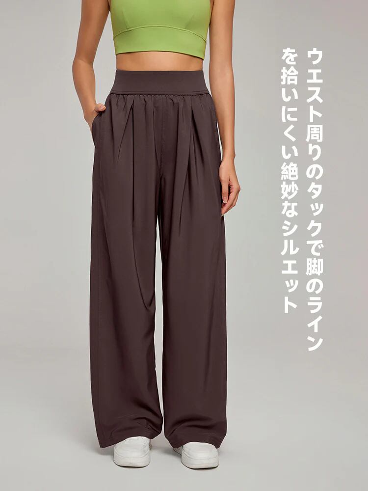 ワイドなデザインで脚長効果もあり、ウエストにストレッチが入っているのでラクにきれいにはける。