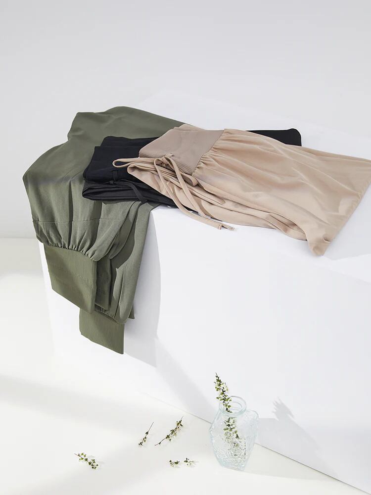 まるで何も着ていないように軽やかで自由自在な動きをサポートする優れだ伸縮性を兼ね備えたジョガーパンツ。