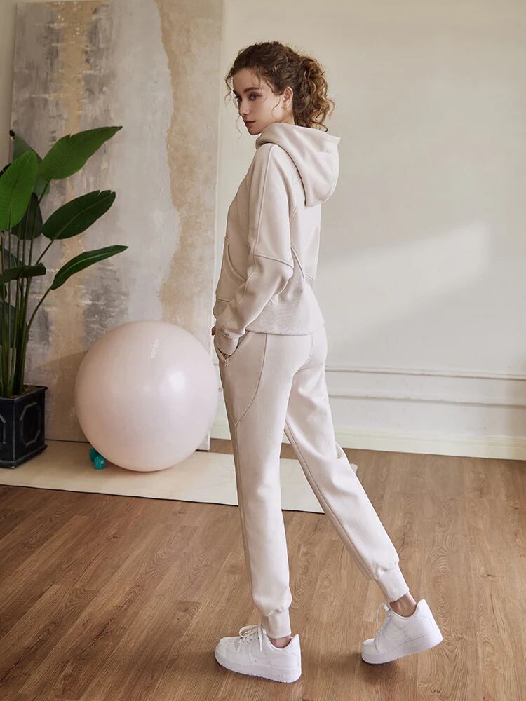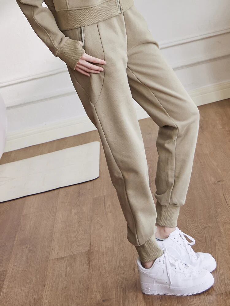 ウエストと裾は伸縮性のあるゴムが締め付けすぎず、程よくフィットします。足首でキュッと締まるので裾直し要らずで身長関係なくスニーカーをアピールしながら履いて頂けます。