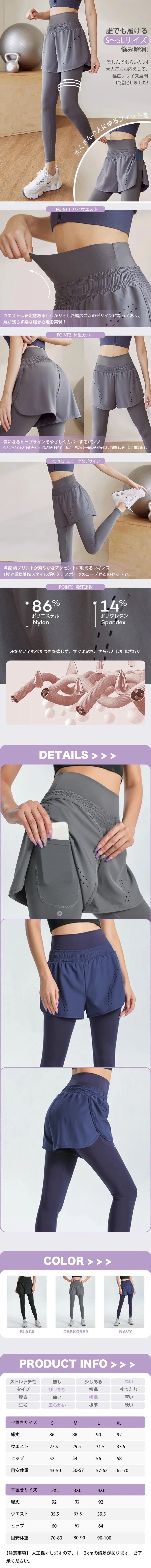 (S~4XL)ショートパンツ付き ハイウェストレギンス 大きいサイズ