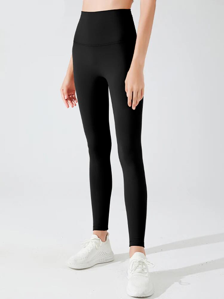 幅広のウエストバンドによりお腹、腰周りをすっきり見せるハイライズロングレギンス。