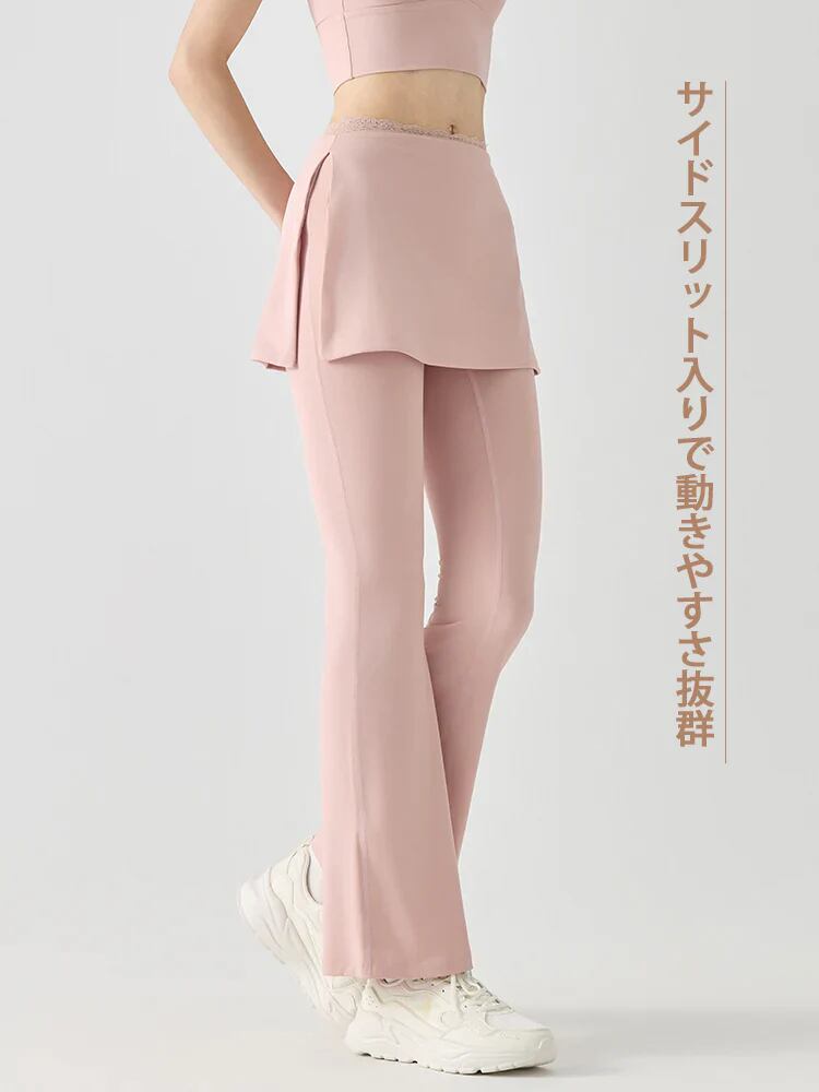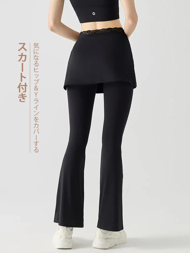 1枚で気になるヒップやYラインをカバーし、自由な動きをサポートするスカート付きレギンス。