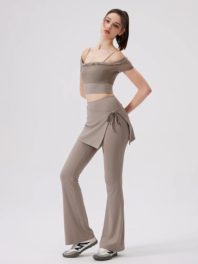冷感 2in1 スカート付き フレア 美脚 ハイウエストレギンス