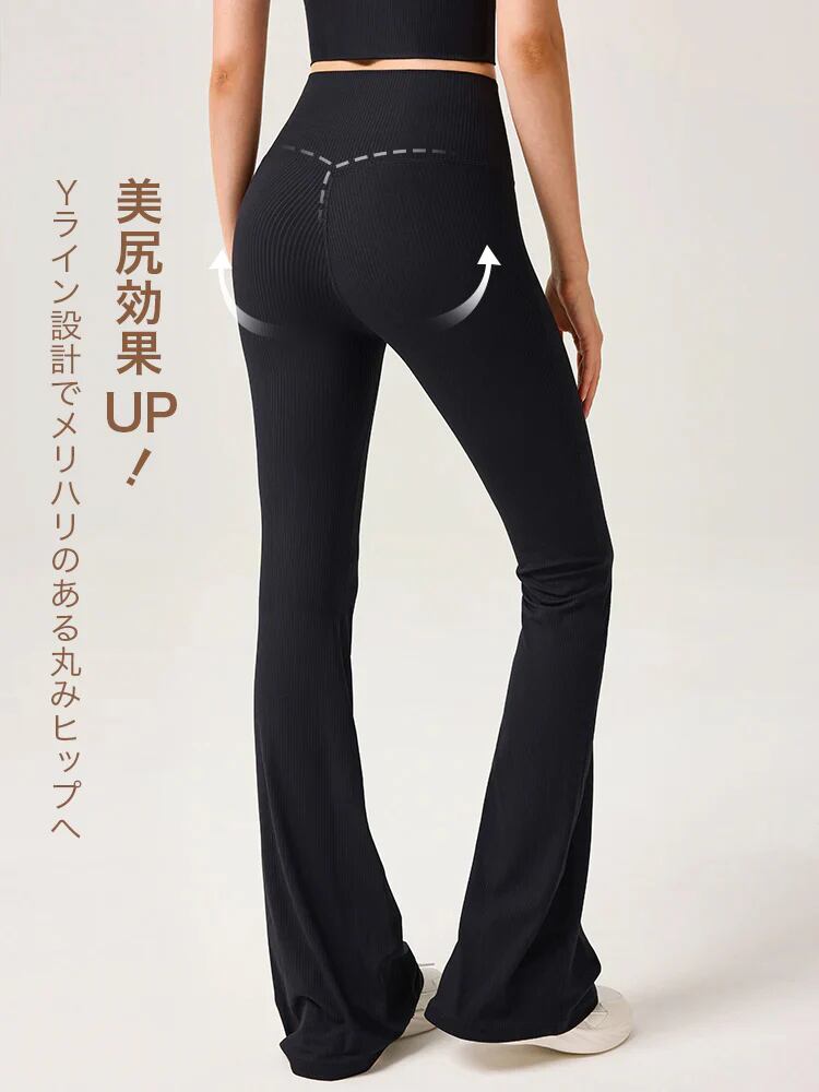 ハイウェスト リブ フレアレギンス