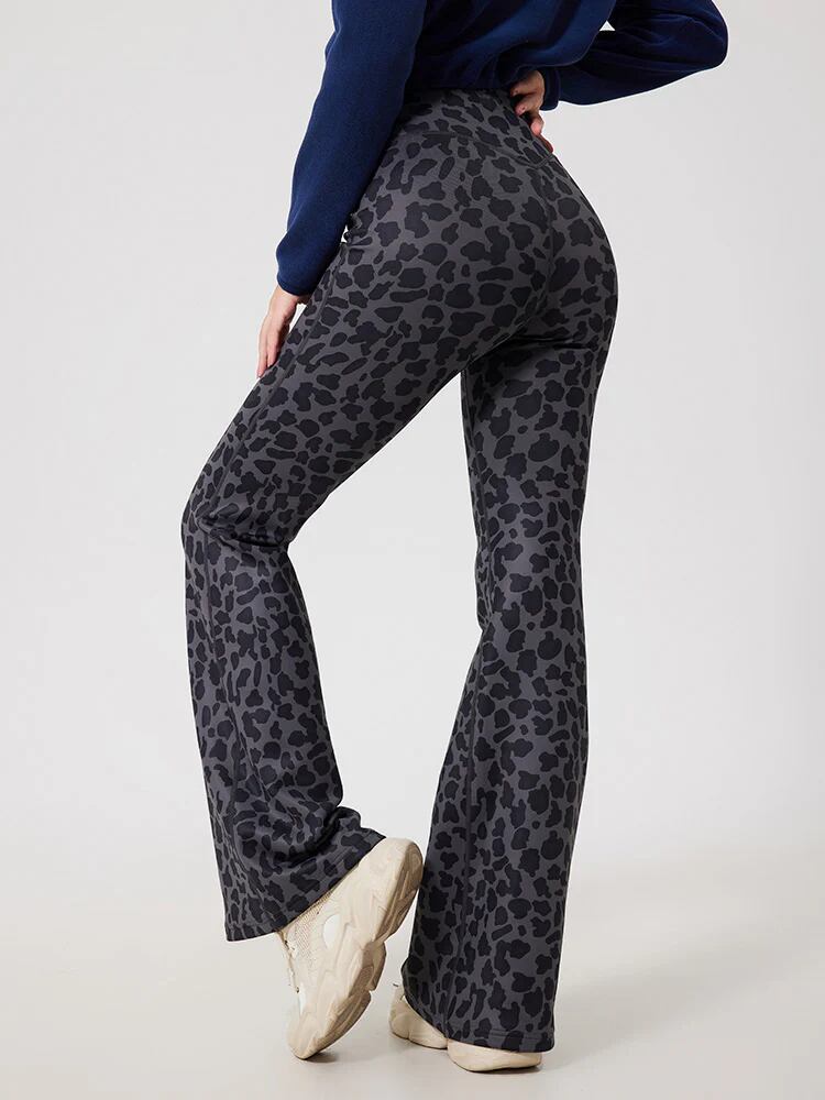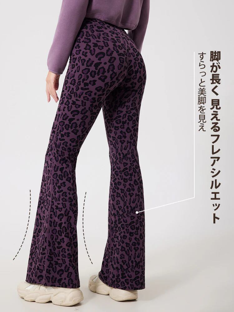 裏起毛 ヒョウ柄 フレアパンツ ハイウエスト