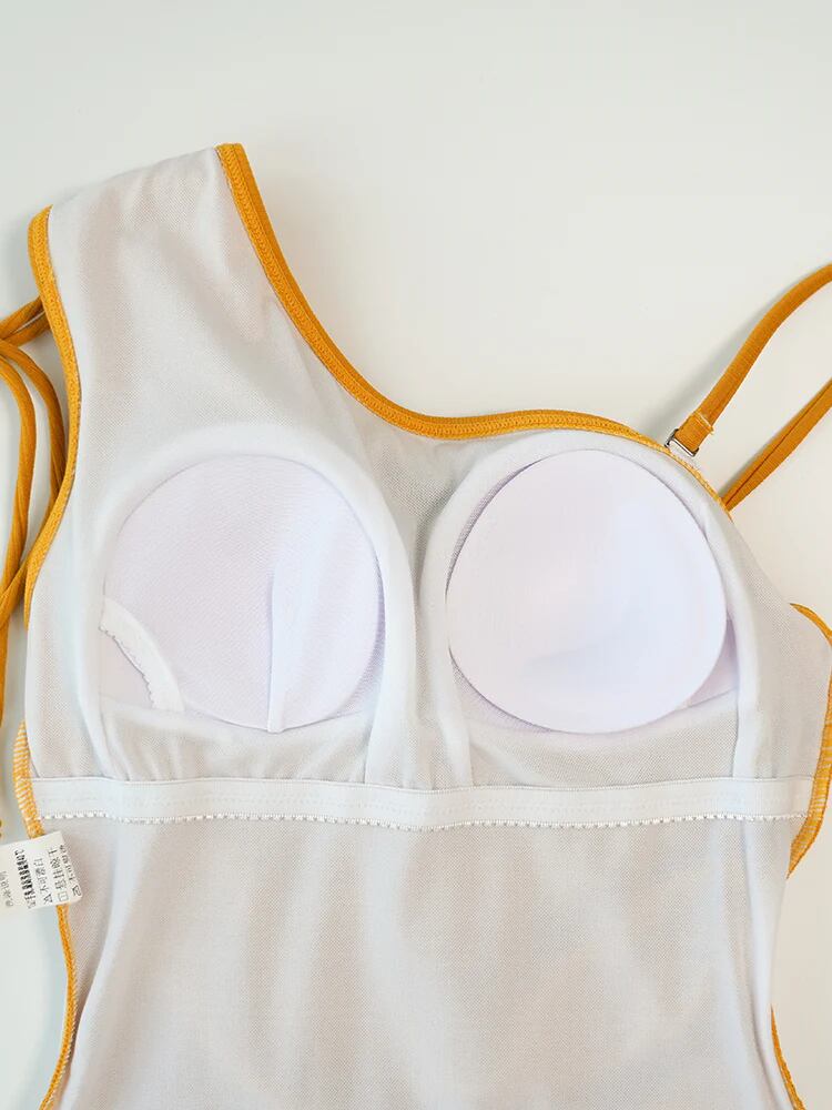 ワンショルダー ギャザー ワンピース水着+スカート 2点セット ドローストリング付き ノンワイヤー