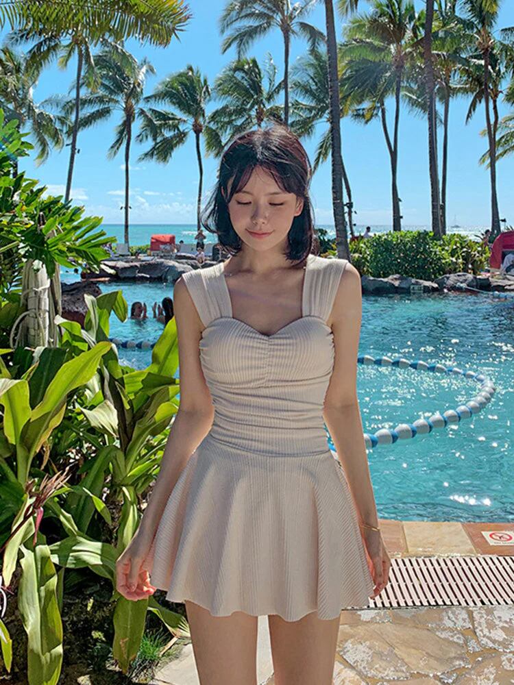 体型カバーワンピース 背中露出範囲調節可能 ショーツ付き