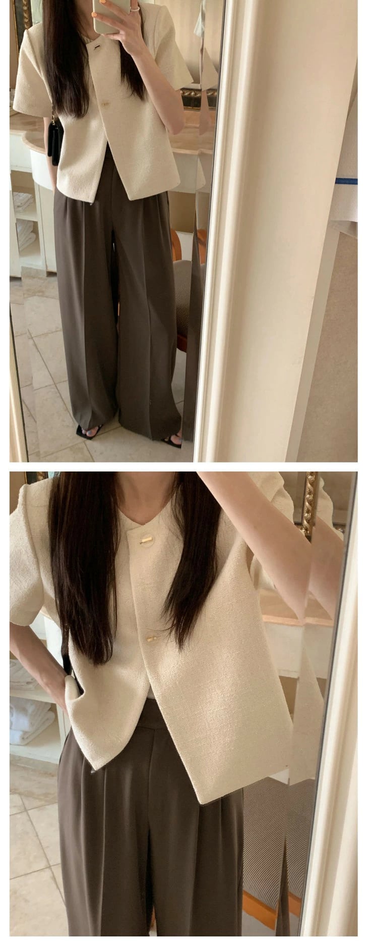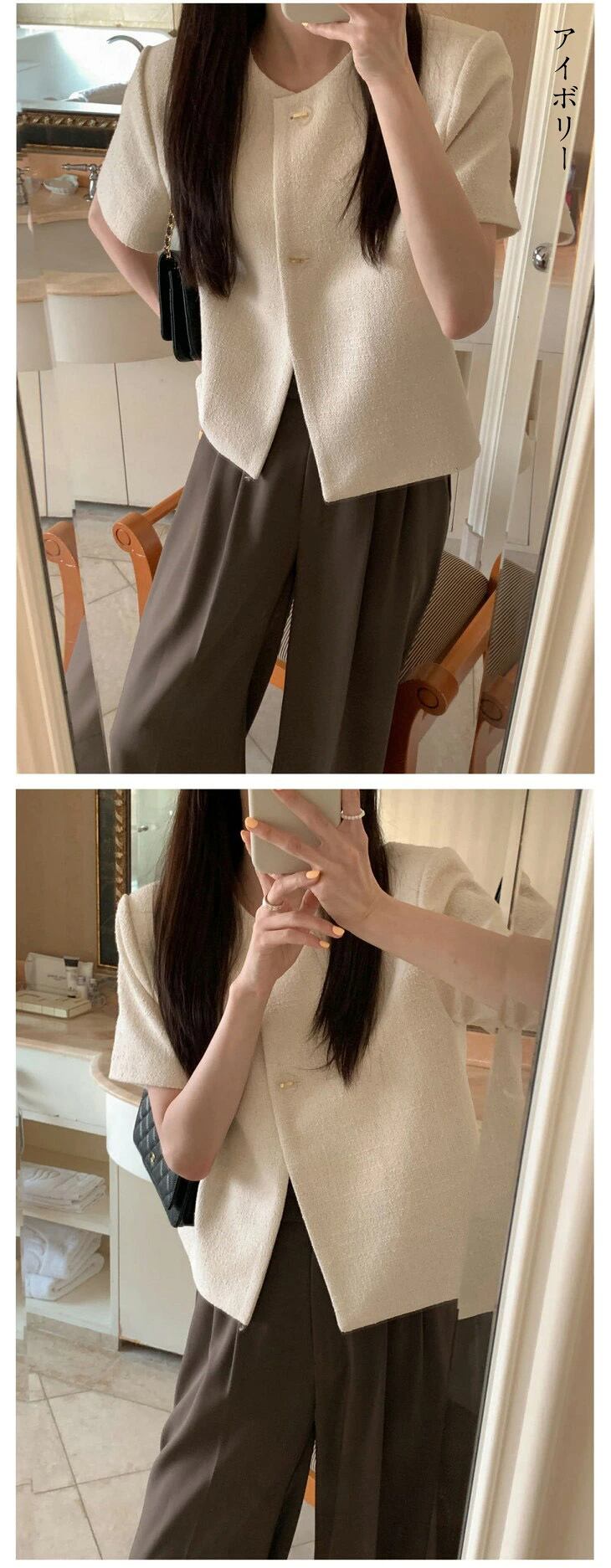 【新発売限定記念価格!】ノーカラー 半袖 ジャケット アウター シンプル 無地 女子会 春夏 おすすめ レディース オシャレ トレンド 人気 プチプラ 韓国ファッション きれいめ カジュアル オフィス デート