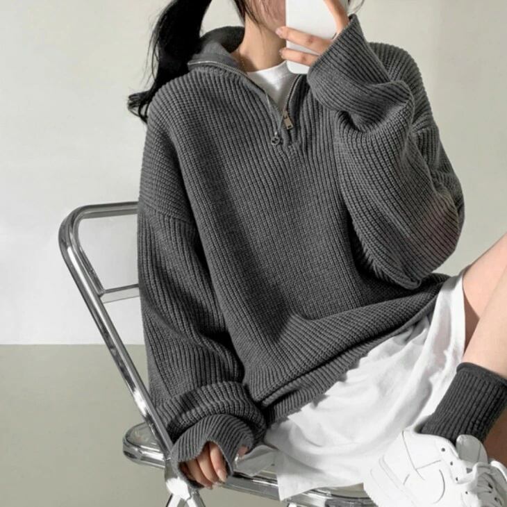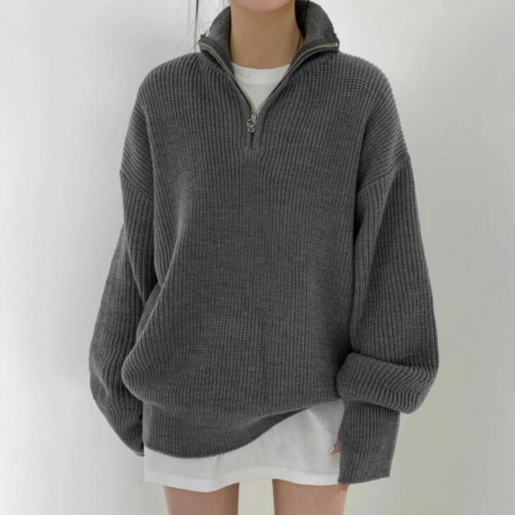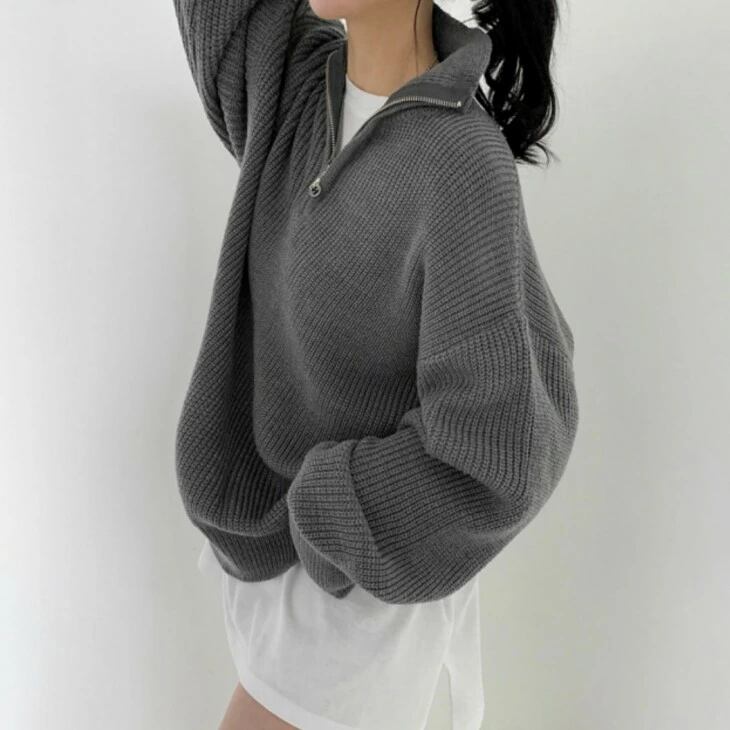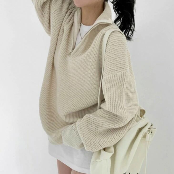 セーター ハーフジッパー プルオーバーニット レディース 韓国ファッション 秋冬 プルオーバー ニット 大人可愛い キレイめ トップス おすすめ オシャレ トレンド 人気 プチプラ ルーズニット 長袖