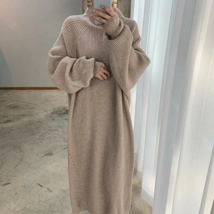 ニットワンピース セーター ロングワンピース ハイネック 大人かわいい 体型カバー おすすめ おしゃれ レディース トレンド 人気 プチプラ 韓国ファッション 2025秋冬新作 タートルネック キレイめ