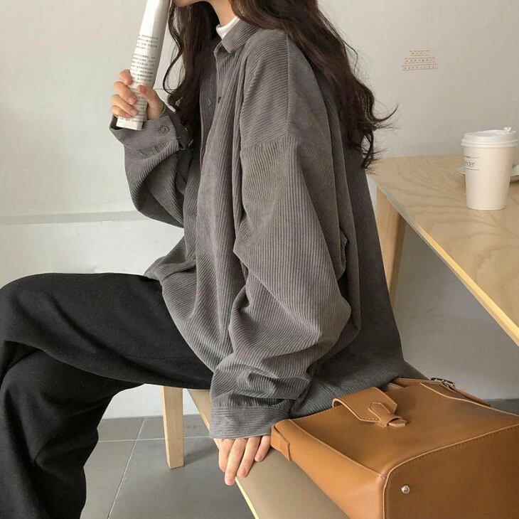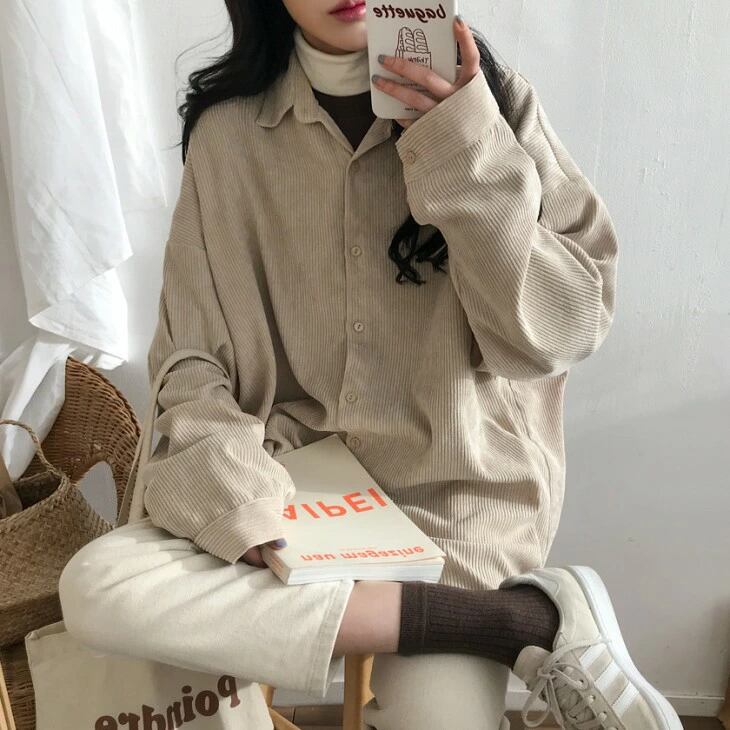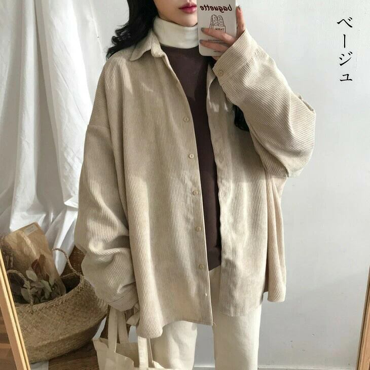 コーデュロイ シャツ ブラウス オーバーサイズ ルーズ カジュアル ゆったり おすすめ おしゃれ レディース トレンド 人気 プチプラ 2025秋冬新作 ビッグシルエット ボリューム袖 バルーン袖