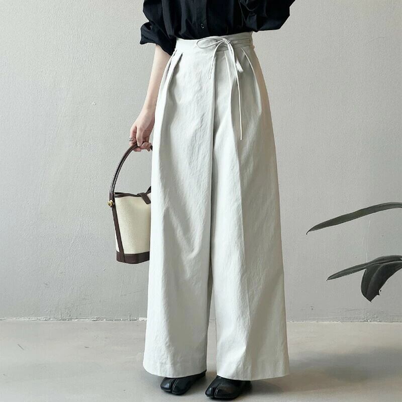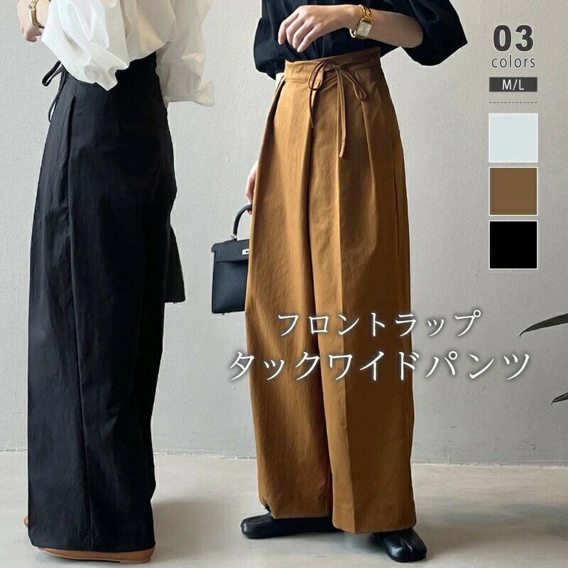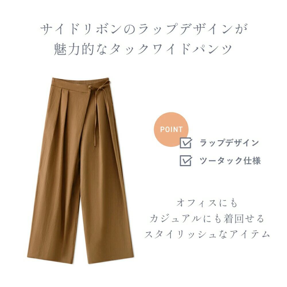 ワイドパンツ タックワイドパンツ サイドリボン ハイウエスト ワイド ストレートパンツ ラップパンツ ゆったり ボトムス リボン ストレート オフィス オフィスカジュアル 大人 春 夏 秋 冬 レディース きれいめ タック パンツ