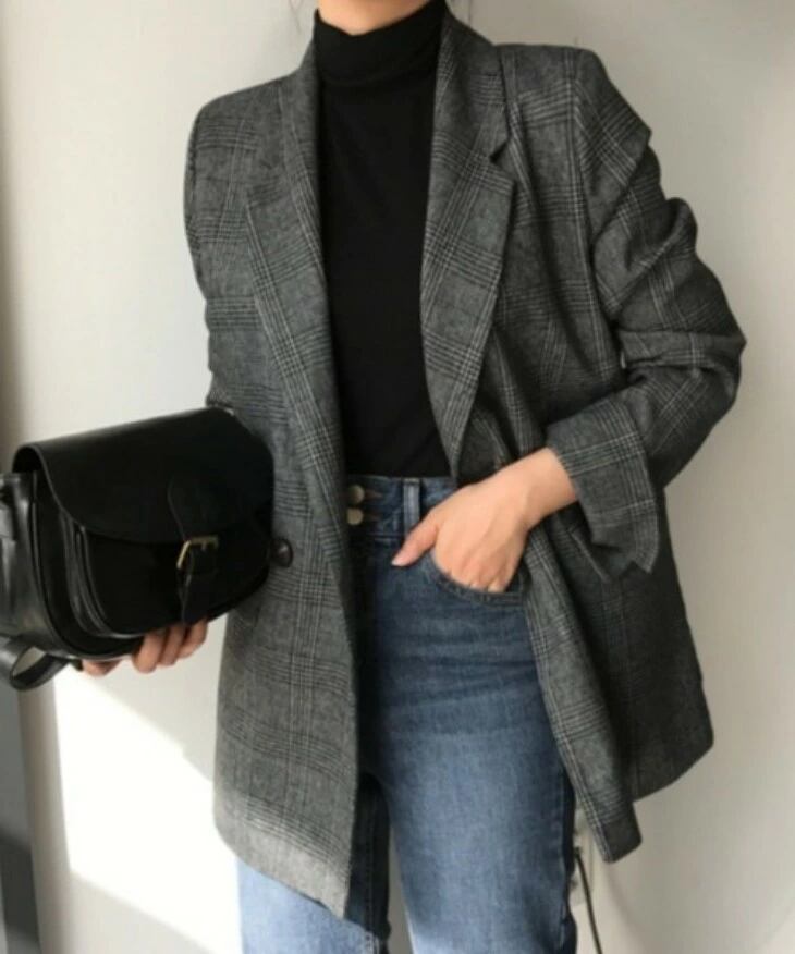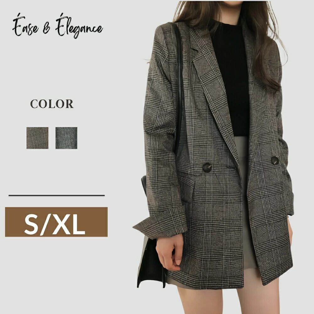 チェック柄 テーラードジャケット ブレザー ダブルボタン レトロ クラシカル おしゃれ レディース トレンド 人気 プチプラ 韓国ファッション 2025秋冬新作 オーバーサイズ ビッグシルエット