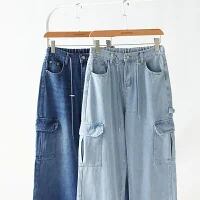 デニムパンツ デニムカーゴパンツ レディース ワイド ゆったり デニム オシャレ ワイドデニム 大きいサイズ ワイドパンツ ドローコード ジーンズ ストレート ボトムス 体型カバー 韓国ファッション カーゴ パンツ カーゴパンツ
