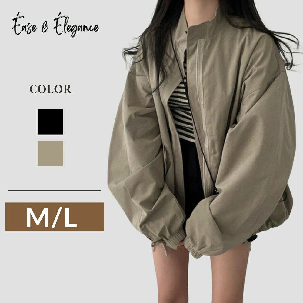ジップアップ オーバーサイズ ハイネック ジャンパー 秋冬 羽織り おすすめ レディース オシャレ トレンド 人気 プチプラ 韓国ファッション ジャケット ブルゾン シンプル 無地