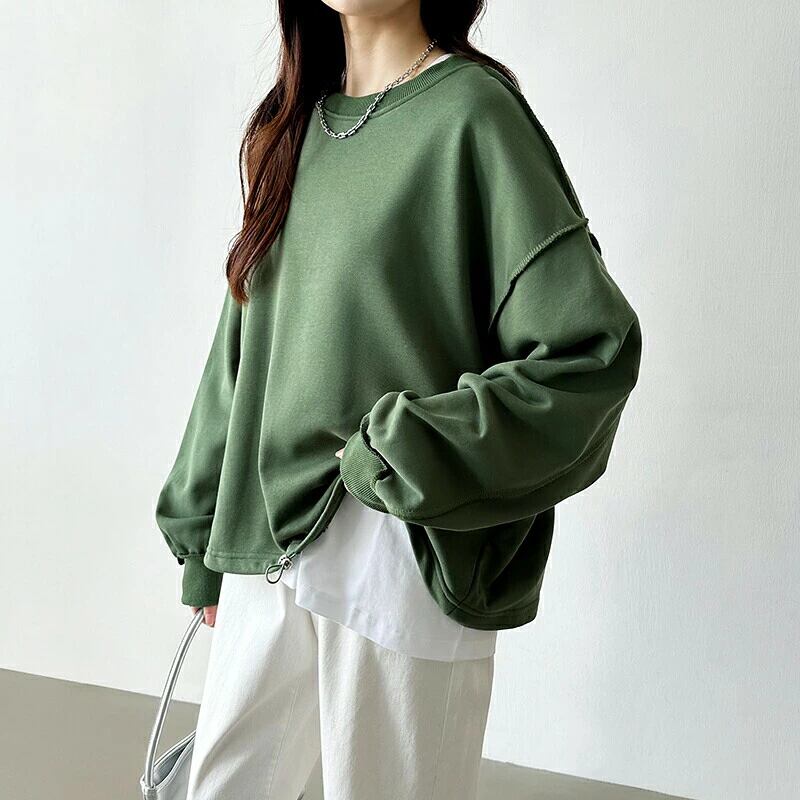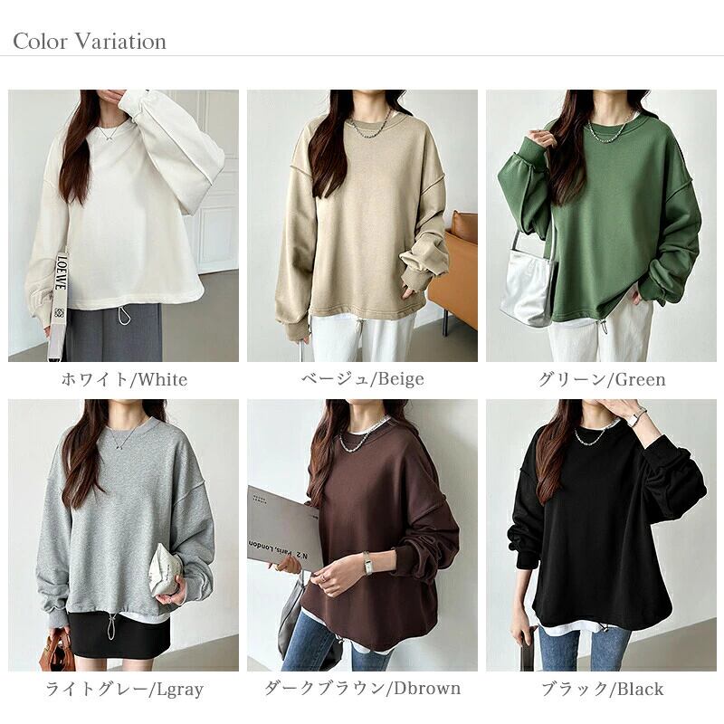 スウェット ボリューム袖 ドロスト オーバーサイズ トレーナー 大きいサイズ 長袖 ドロップショルダー 体型カバー おしゃれ スウェットトレーナー クルーネック ビッグシルエット 春 秋 冬 レディース トップス 無地 ゆったり
