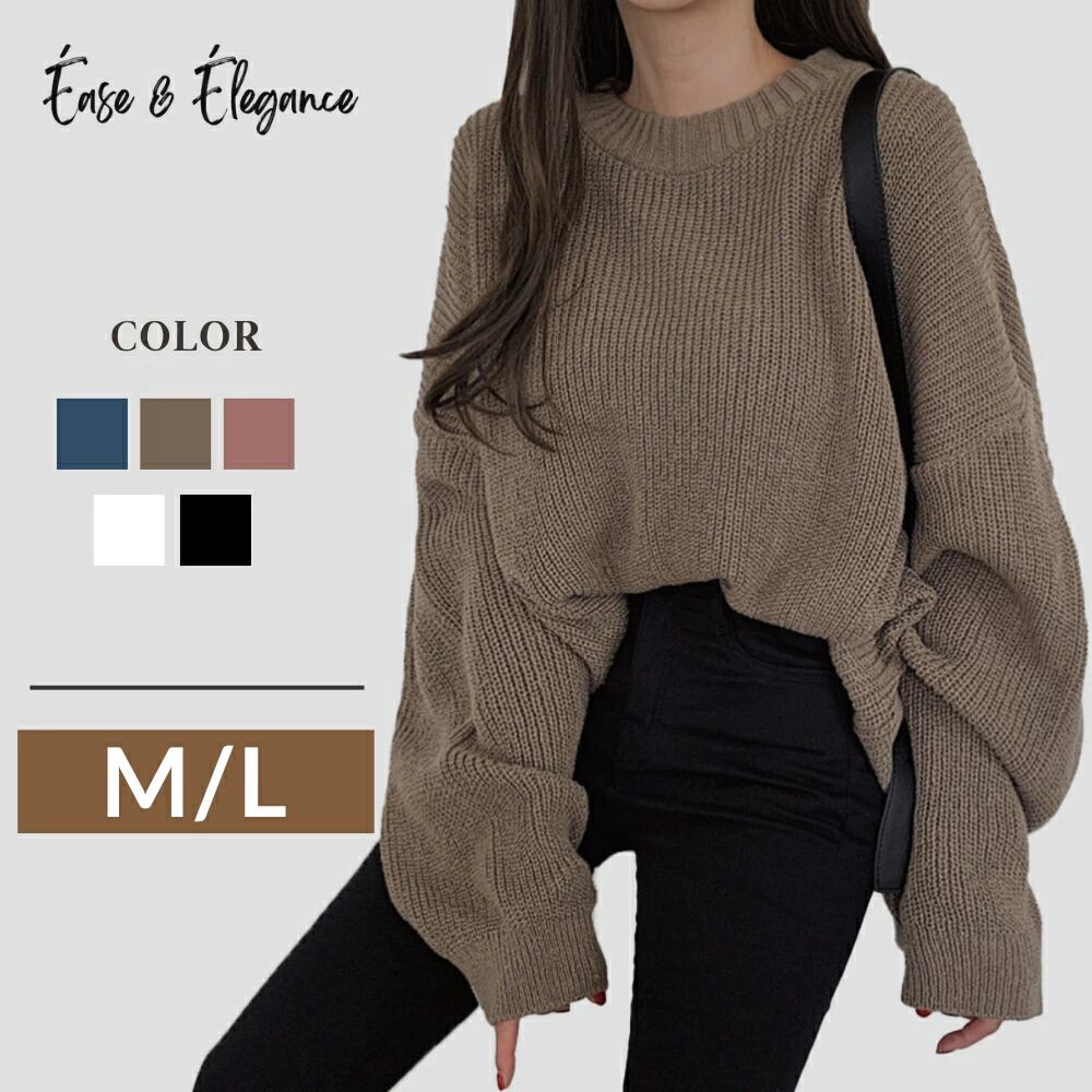 ラウンドネックニット 大人カジュアル ぽわん袖 トップス 長袖 ルーズ レディース オシャレ トレンド 人気 プチプラ 韓国ファッション ニット セーター くすみカラー