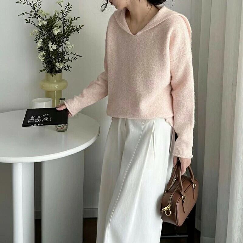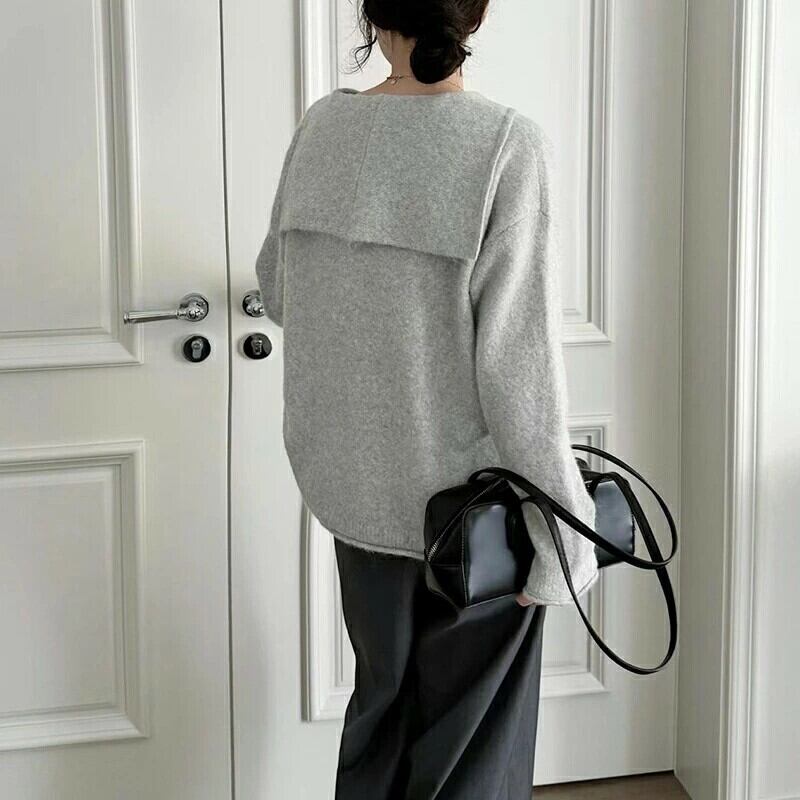 ニット セーラーカラー トップス セーラーカラーニット レディース セーラーカラープルオーバー ビッグカラー vネック プルオーバー ドロップショルダー vネックニット ニットセーター ふんわり 柔らかい 秋冬 春 秋 冬 長袖 大人
