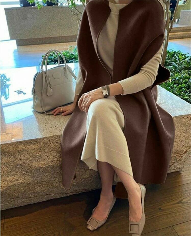 秋冬 ポンチョコート フリーサイズ ケープコート マント ストール ロングベスト ゆったり 体型カバー マントコート ロングコート 大きめ ベーシック 通勤 おしゃれ コーディネート