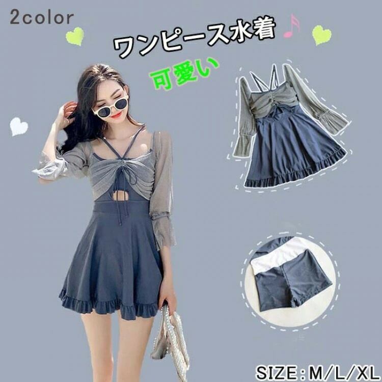 レディース 水着 ワンピース 体型カバ 水着 続々入荷中 ブルーグレー ブラック M(体重参考40-48kg) L(体重参考48-55kg) XL(体重参考55-60kg)